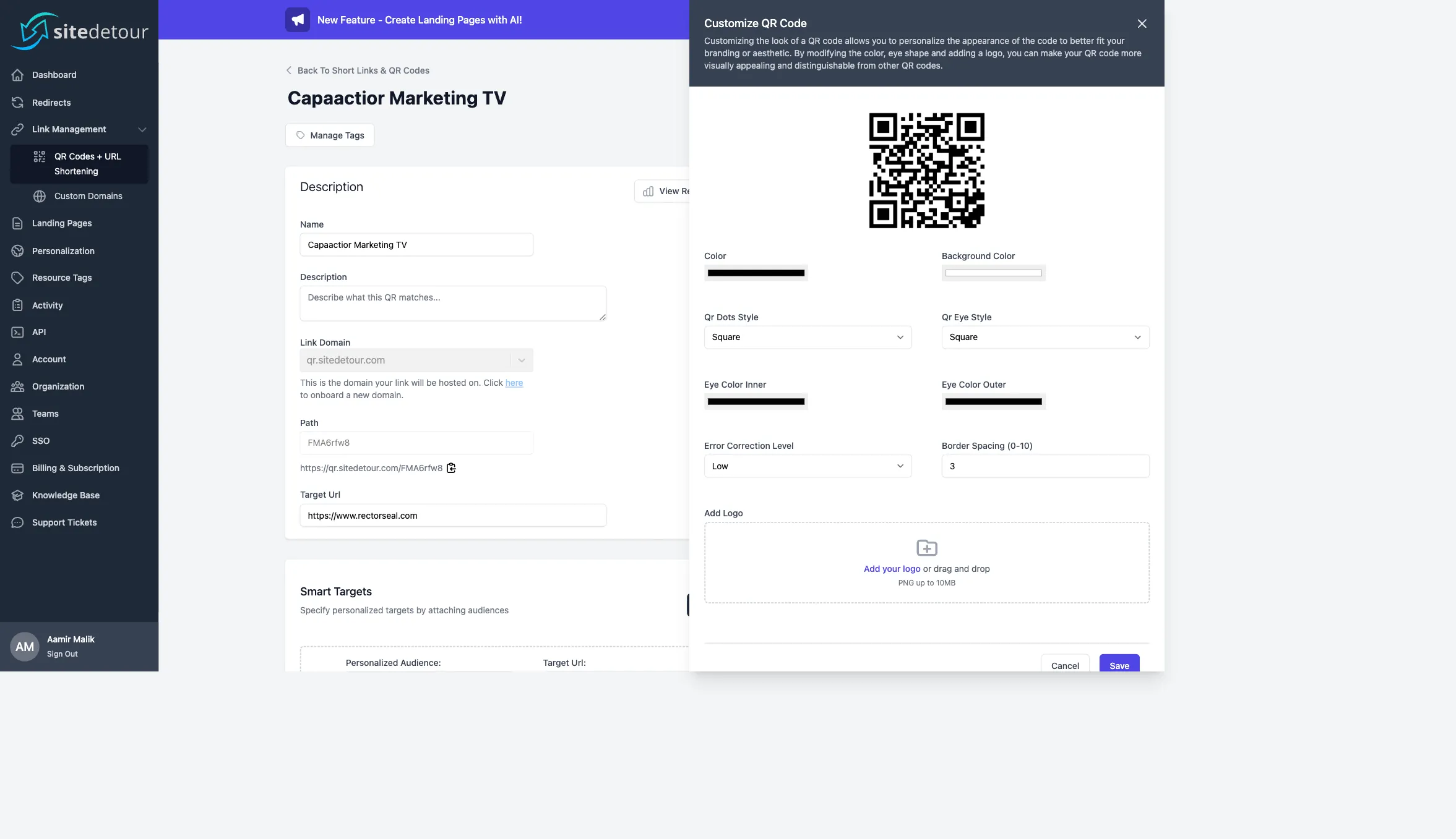 qr.sitedetour.comif you haven't onboarded a custom domain yet. - Target Url — the default destination.